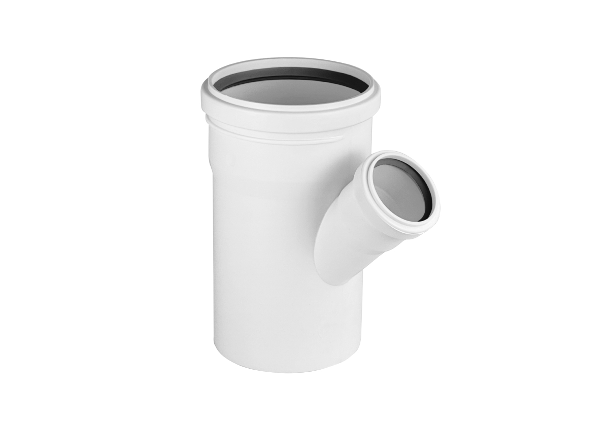 Тройник применяют для разветвления трубопроводов под углом 45 и 87,5 градусов одного или разных диаметров в системах внутренней канализации.